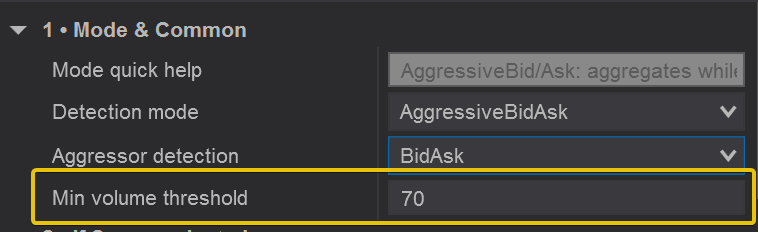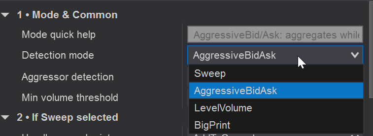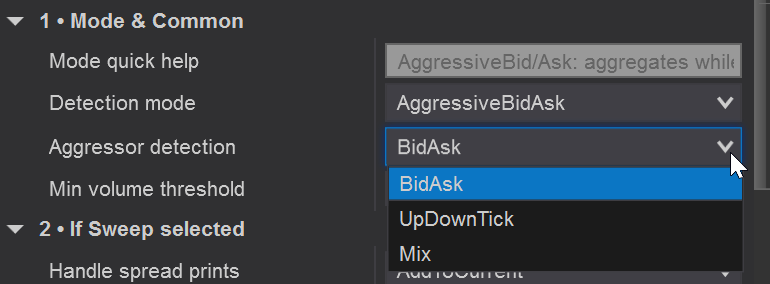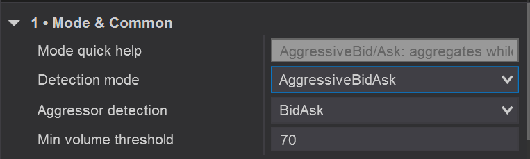 - Detection mode: AggressiveBidAsk