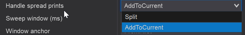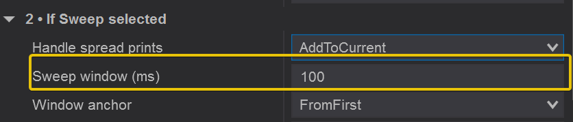 Combine spread prints into the current sweep group – even if they hit multiple levels at once. This makes the sweep more continuous and is usually better for understanding strong, fast aggression.