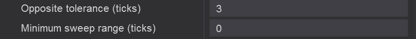 This defines how “clean” the sweep must be. A small tolerance accepts only pure aggression; a bigger tolerance allows small opposite trades but still treats the move as one sweep.