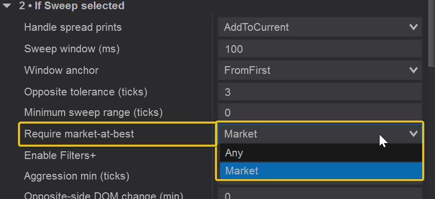 This ensures the sweep represents real, aggressive market orders.