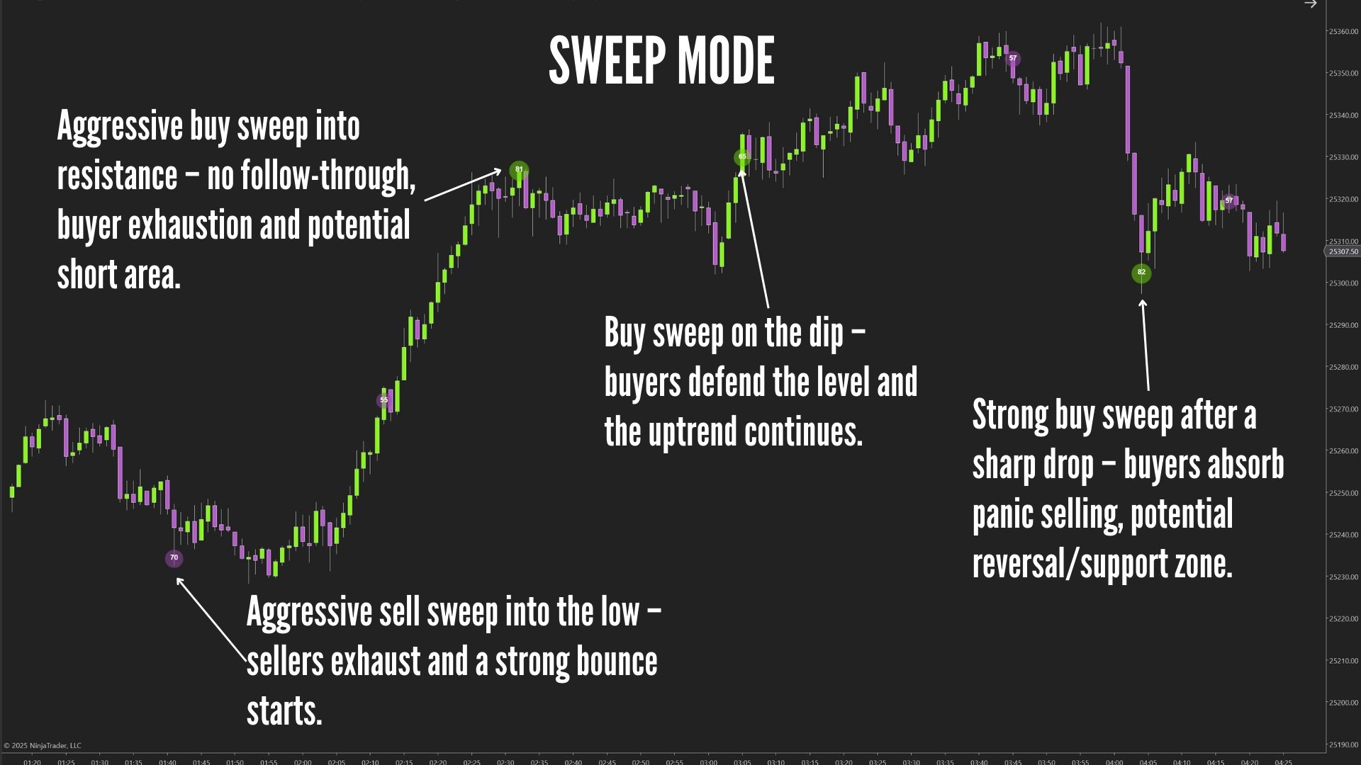 Only show sweeps that push strongly through several ticks. Ideal for detecting real momentum or aggression.