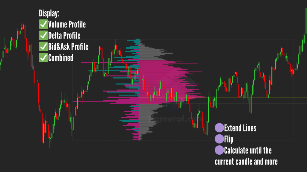 - Set profile width (%) to control how much horizontal space your volume profile occupies on the chart – great for clean, minimal setups.