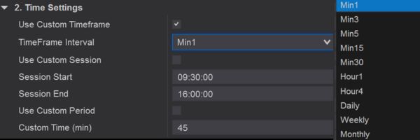 Use fixed timeframes (from 1 minute to monthly) or fully customizable sessions (e.g., New York, London, Asia, or any custom time range).