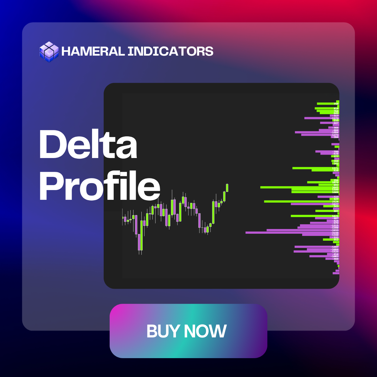 Delta Profile shows the distribution of buying vs. selling volume at each price level, used to identify hidden imbalances and key reaction zones.