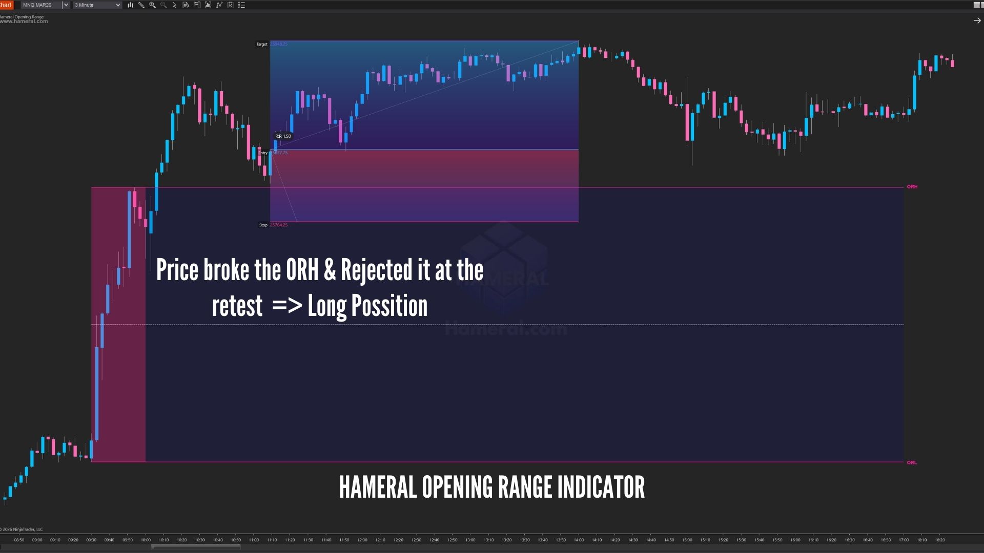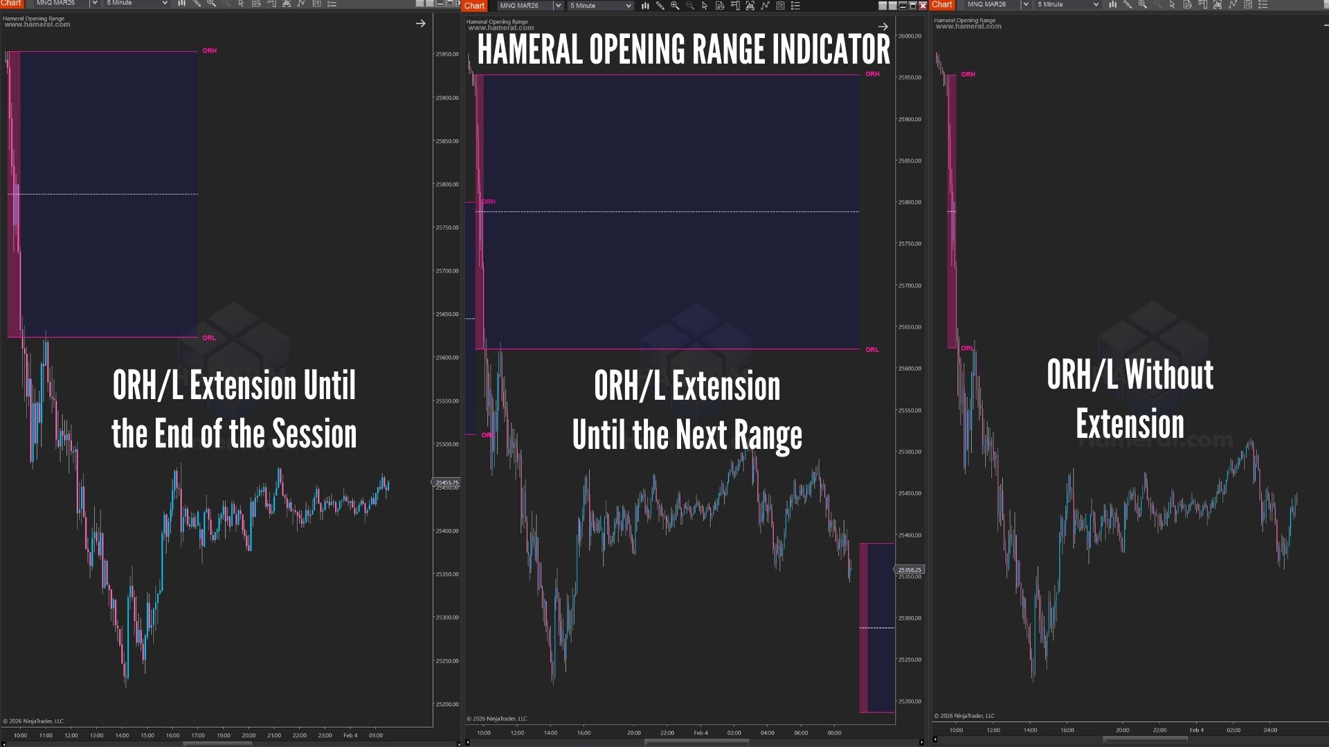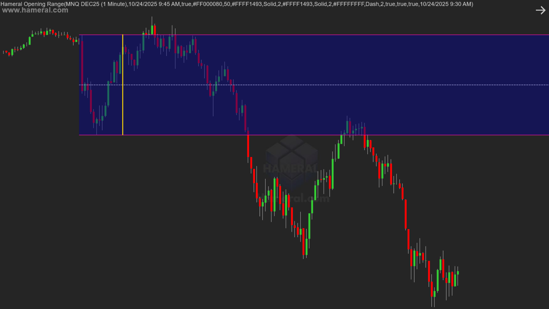 Hameral Opening Range plots the Opening Range High/Low + Mid and visually fills the range, then extends it forward so you always trade with the day’s most important structure on screen.